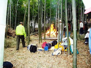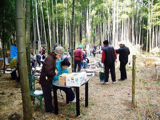 12月19日、2010年耕春会活動の納会・忘年会が美濃山竹林の第2フィールドで賑やかに開かれました(=写真)。竹林忘年会は、春のたけのこ掘り&バーベキューとともに耕春会恒例の2大イベントのひとつ。今年は、2006年10月末に初めて竹藪を切り開き元のたけのこ畑の再生活動に着手して以来、まる4周年に当たる年です。