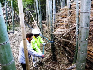 伐り取った竹の枝葉を搬出→畑の肥料に活用