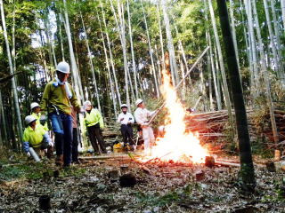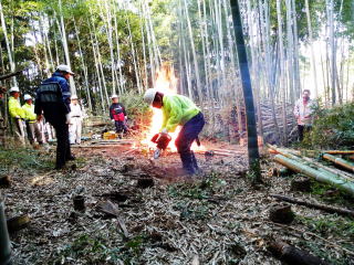 ▼枯れ竹を燃やす