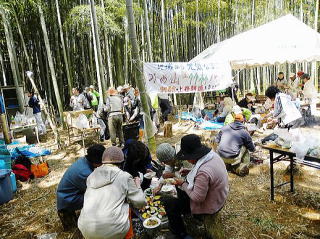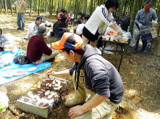 4月29日、GW恒例の「美濃山”竹林PARTY”」 が同第2フィールドで開かれ、80人を超える参加者がたけのこ掘りや焼肉、ビンゴゲームを楽しみ、和やかに交流を深めました(=写真)。