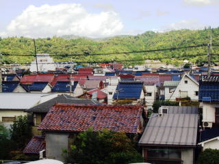 【写真】(上→左→右の順)市役所から整備対象の中心市街地を望む/赤瓦・白壁土蔵群/チャレンジショップの店/街並み修景事業(改修中の建物も)/旧銀行跡は「まちかど博物館」に/八幡市にも縁のある淀屋辰五郎の墓/レトロ館のリーフ