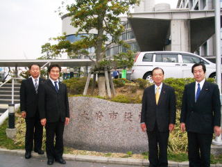 八幡市議会会派「八幡みどりの市民」(菱田明儀代表、鷹野宏、小北幸博、上谷耕造の4議員)は、10月22日と同23日の両日、愛知県の大府市と同半田市を訪ね、行政課題について視察研修しました(=写真)。テーマは、大府市がアダプトプログラム、半田市は市民活動センター。アダプトプログラムというのは、市民が道路や公園など地域の公共施設をわが子に見立てて、互いに養子縁組を結んでもらい、市民に愛情を持って清掃や美化活動などの面倒を見てもらうという、米国発の「市民協働」方式(ボランティア活動)です。