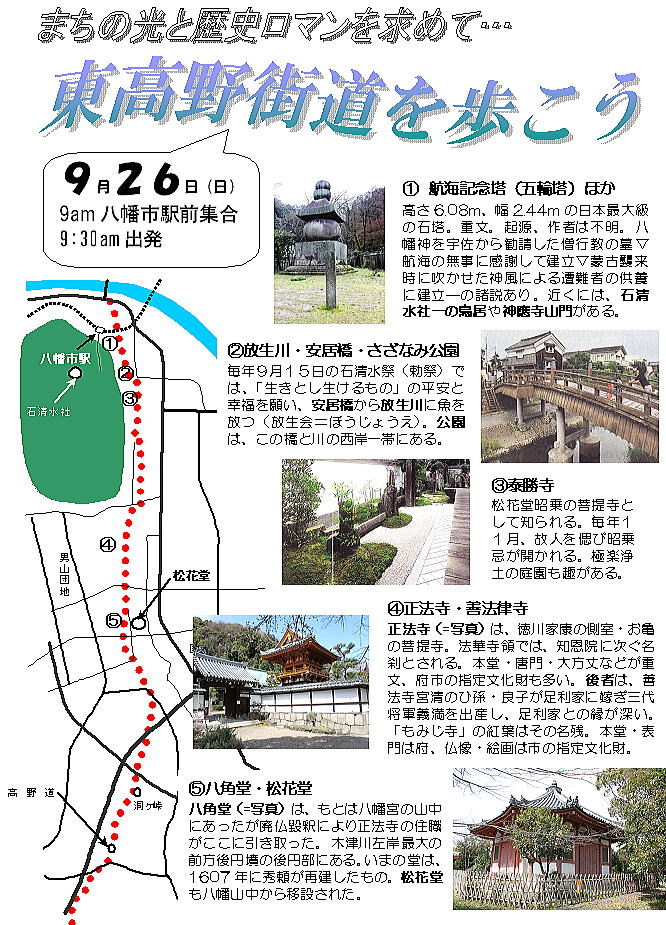 ●9/26八幡みどりの市民とともに東高野街道を歩こう
