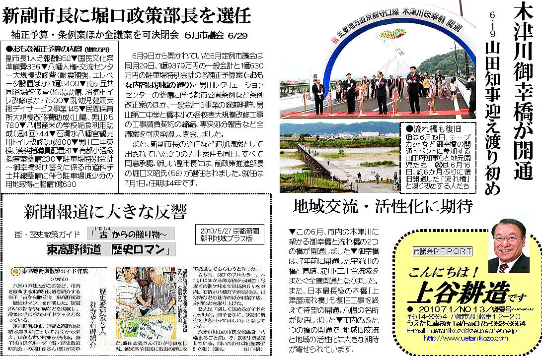 ▼「市議会REPORT~こんにちは!上谷耕造です」NO.13(10/7/1)