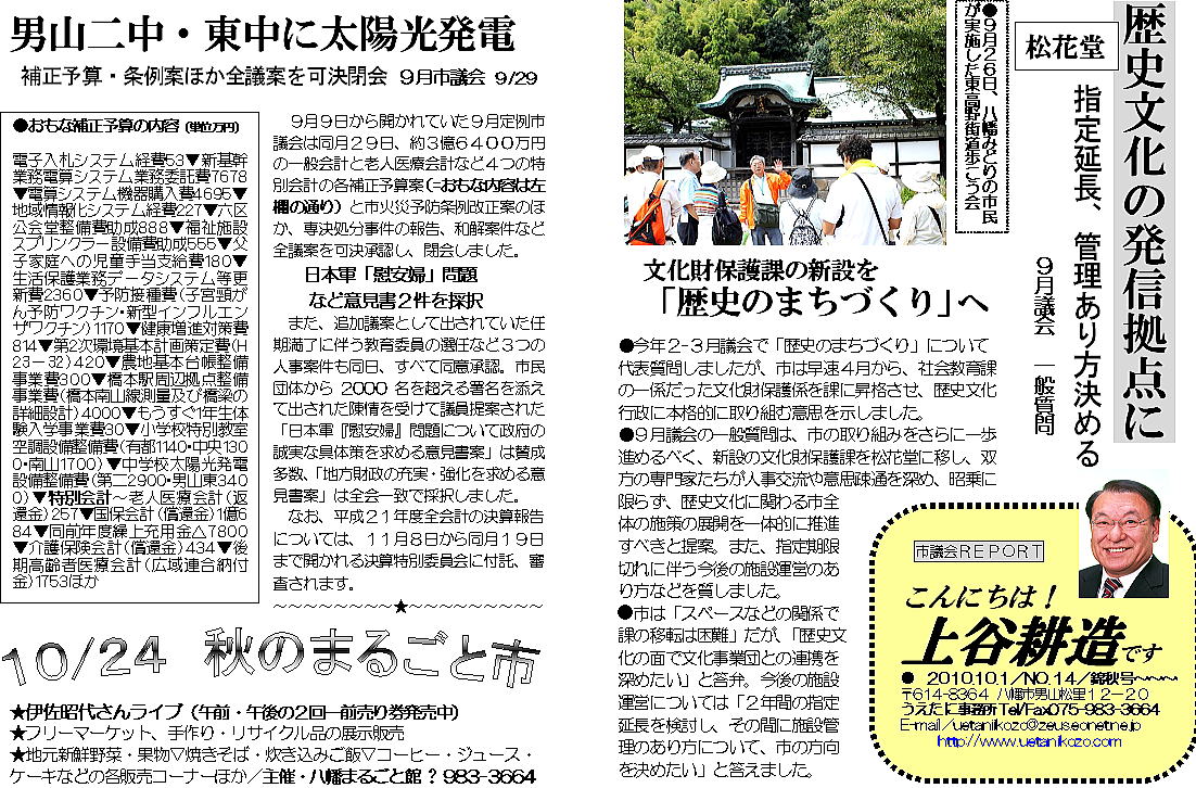 ▼「市議会REPORT~こんにちは!上谷耕造です」NO.14(10/10/1)