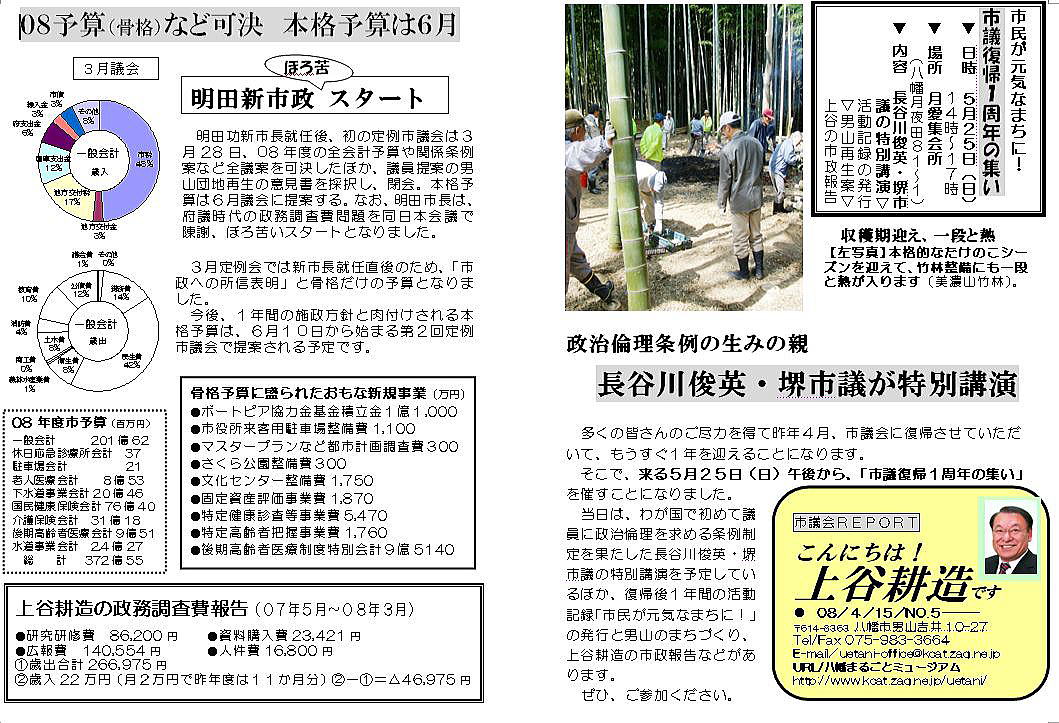 ▼「市議会REPORT~こんにちは!上谷耕造です」NO.5(08/4/15)