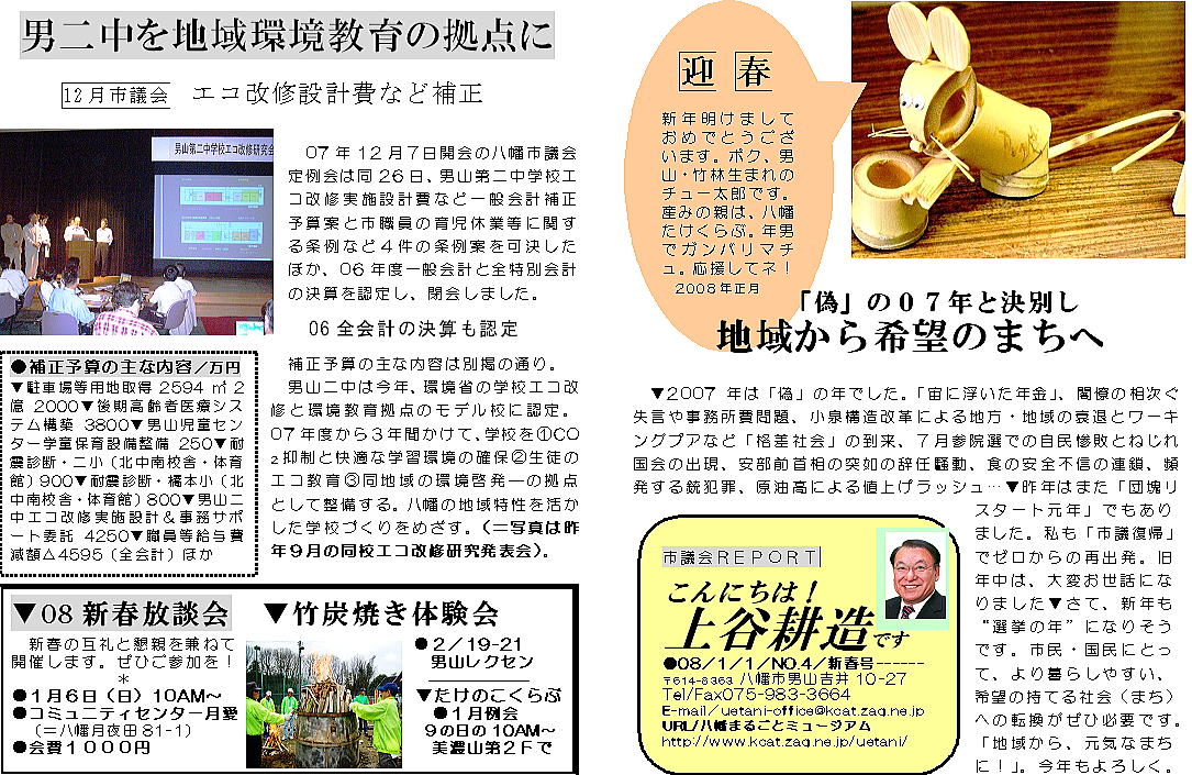 ▼「市議会REPORT~こんにちは!上谷耕造です」NO.4(08/1/1)