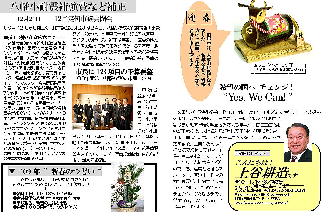 ▼「市議会REPORT~こんにちは!上谷耕造です」NO.8(09/1/1)